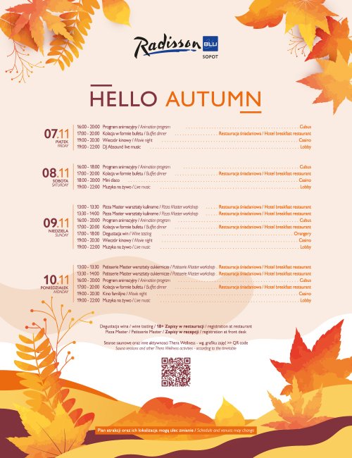 Jesień i zima nad Bałtykiem jest równie magiczna, jak wiosna czy  lato. Możecie być pewni, że w Radisson Blu Hotel, Sopot każdy znajdzie okazję do wypoczynku, relaksu, a także do pracy w komfortowych warunkach. Każda oferta zawiera specjalnie przygotowane atrakcje.