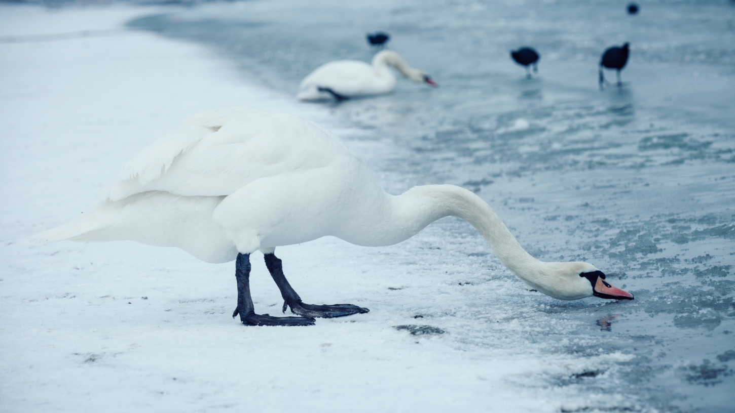 Skąd ta różnica? Łabędzie mają bardzo ograniczoną dietę zimą. Żerują głównie na roślinach wodnych, miękkich trawach, młodych pędach roślin i drobnym pokarmie z płytkiej wody.